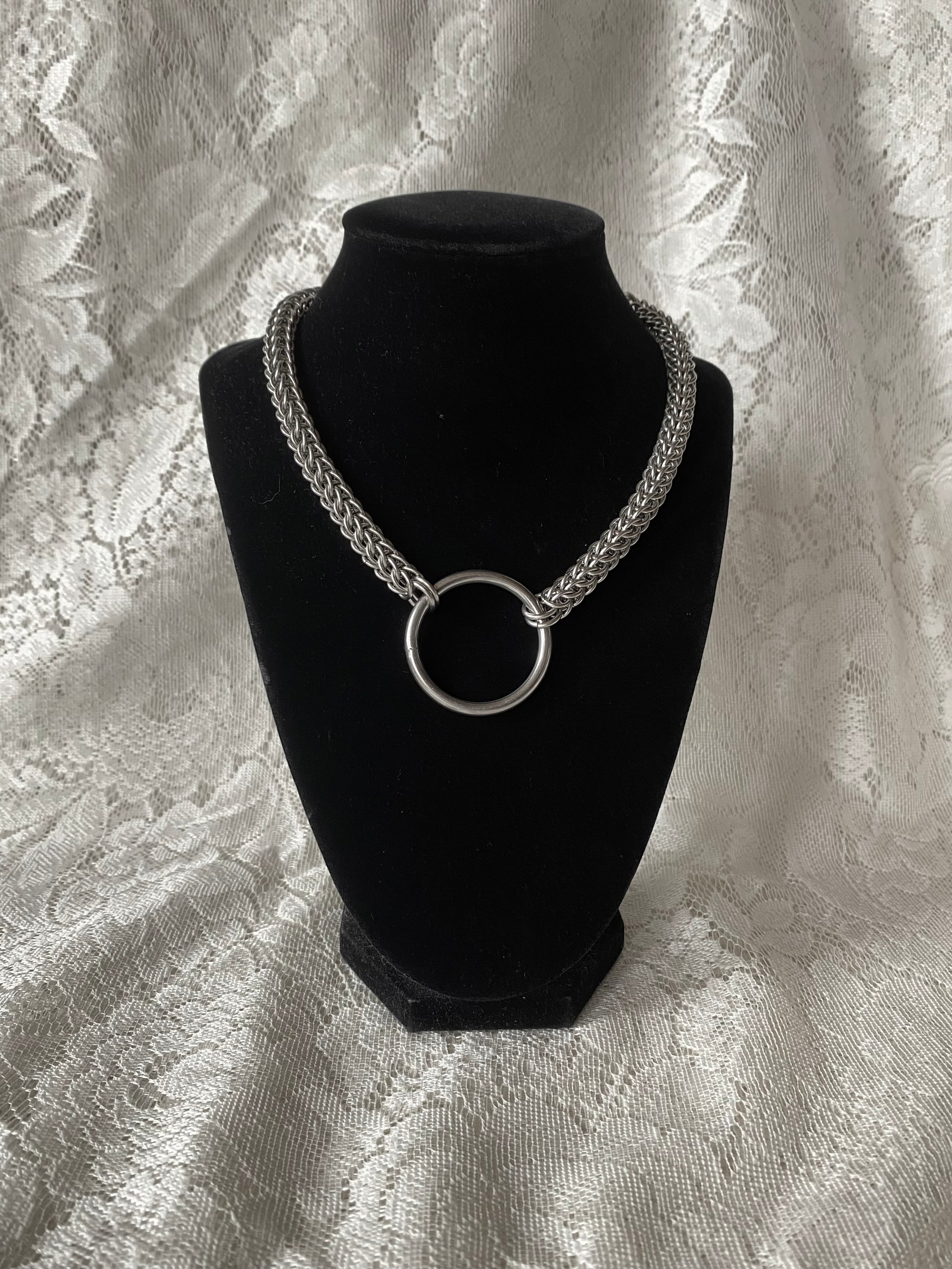 Stainless steel rings, hardware with a zinc plated clasp. Currently sized to 17" and can be adjusted to be longer. Just add a note to your order at check out.