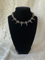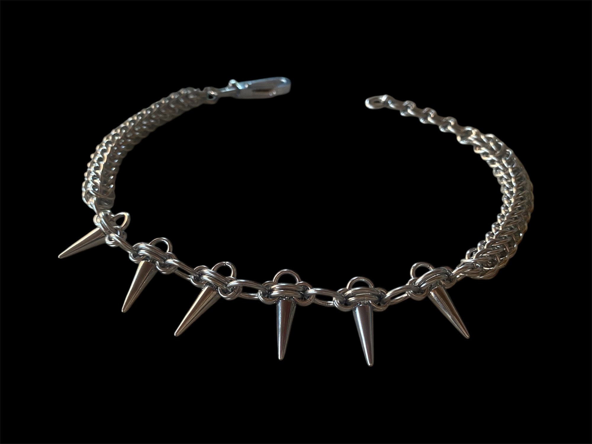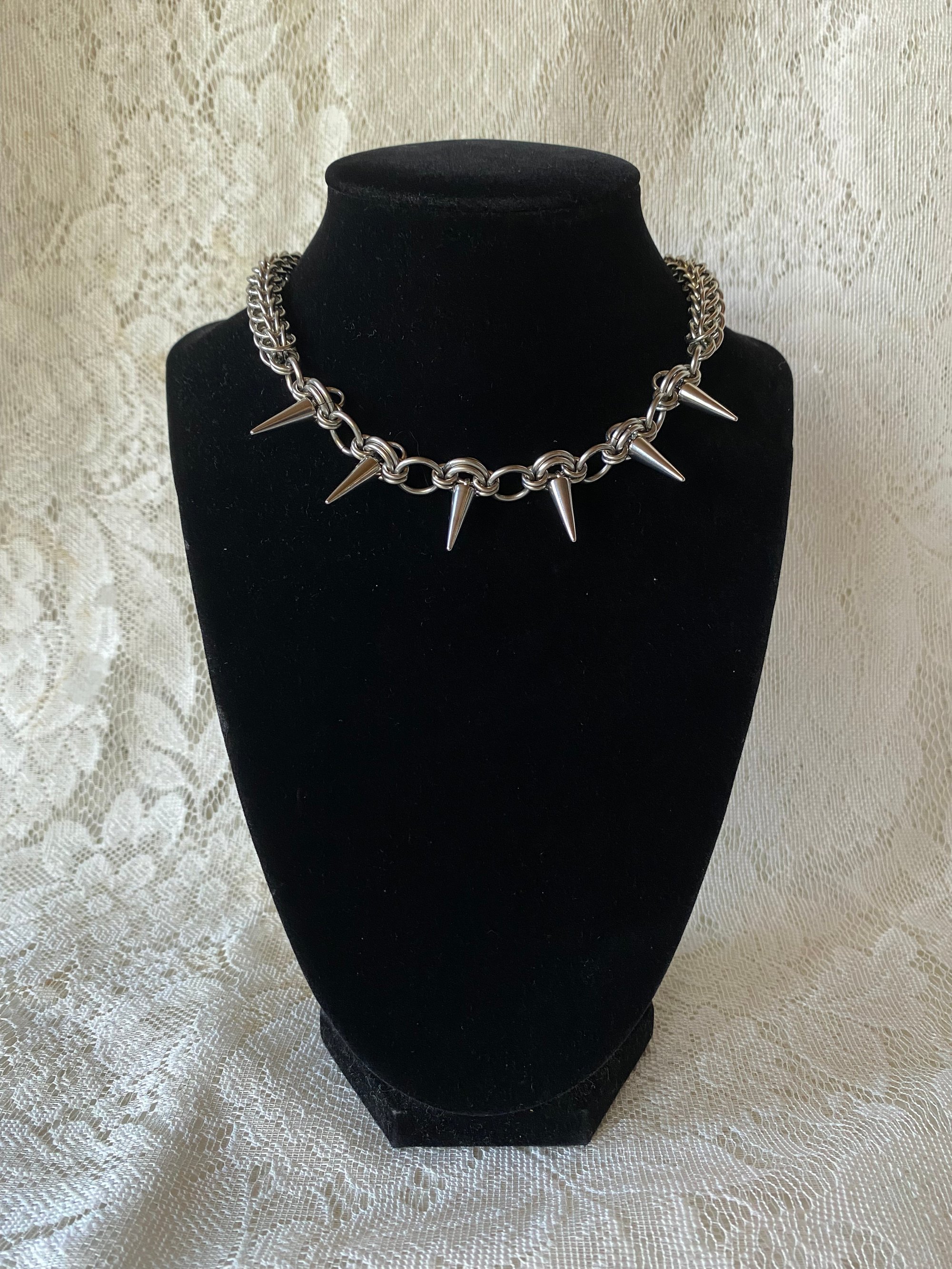 Stainless steel rings, spikes and hardware. Sized at 15"-16" and can be sized up.